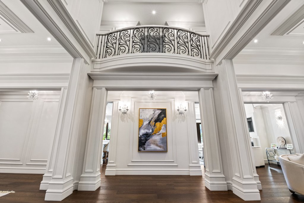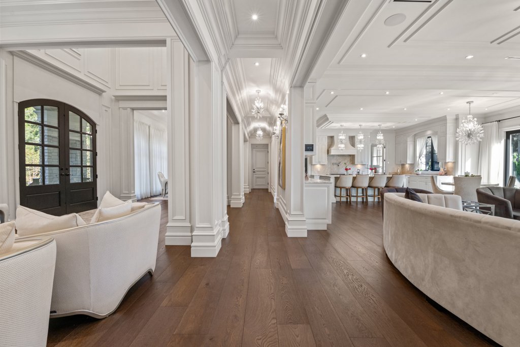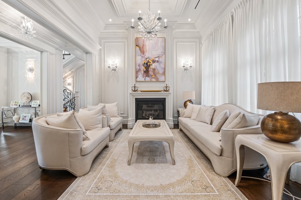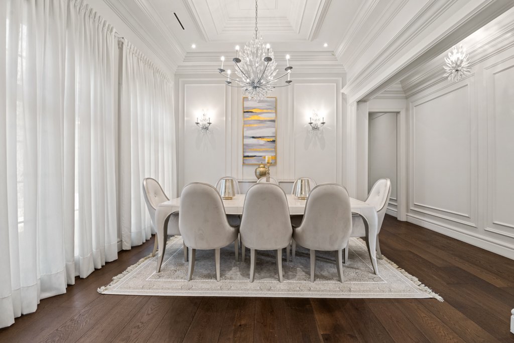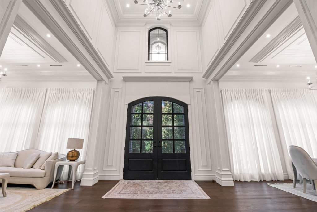 From the moment you enter, you are welcomed by grand-scale living with exquisite attention to detail—featuring custom millwork, rich finishes, and full smart-home automation. The entire home is equipped with automated lighting, integrated speakers throughout, and high-end crystal chandeliers that elevate every space with sophistication.