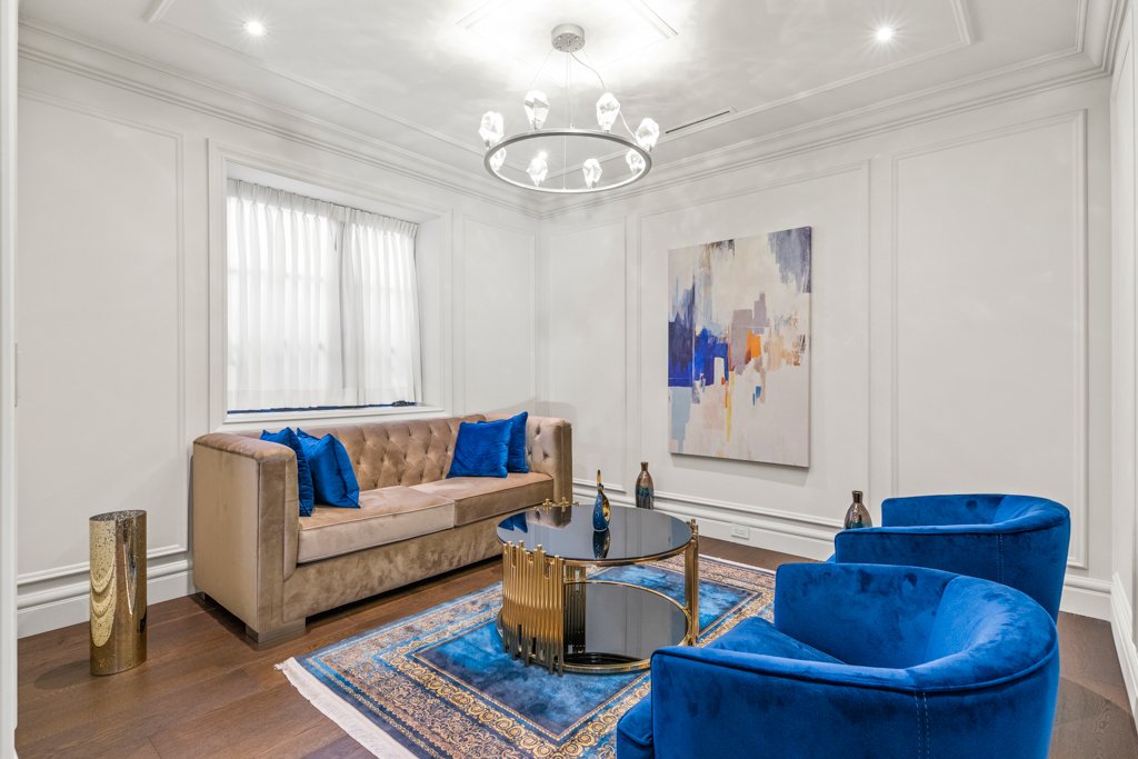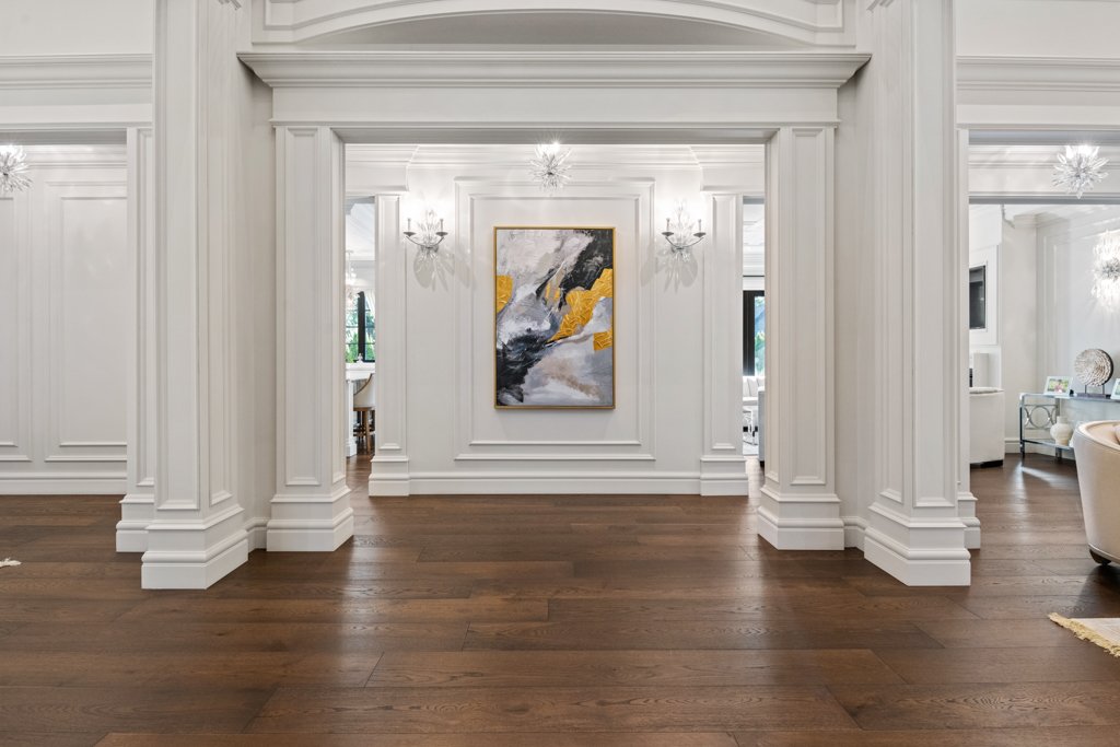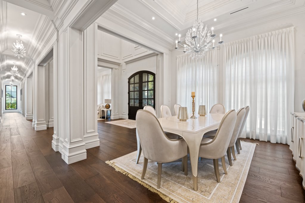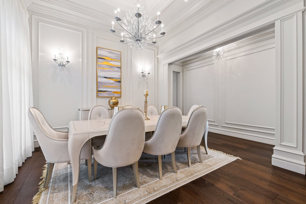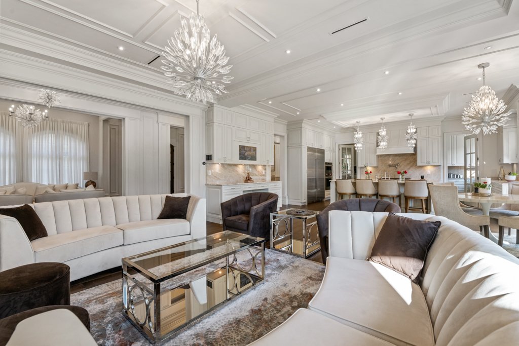 From the moment you enter, you are welcomed by grand-scale living with exquisite attention to detail—featuring custom millwork, rich finishes, and full smart-home automation. The entire home is equipped with automated lighting, integrated speakers throughout, and high-end crystal chandeliers that elevate every space with sophistication.